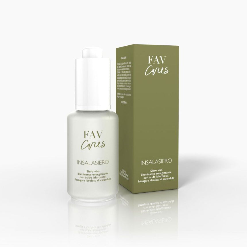 Siero viso illuminante energizzante con acido ialuronico, lattuga e idrolato di calendula.